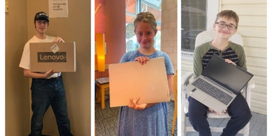 Pictured are three of the five laptop winners; Kris, Chloe, and Zak (not pictured are Deangelo and Nick)